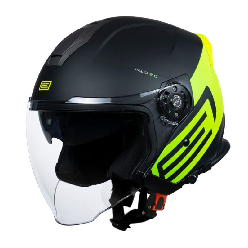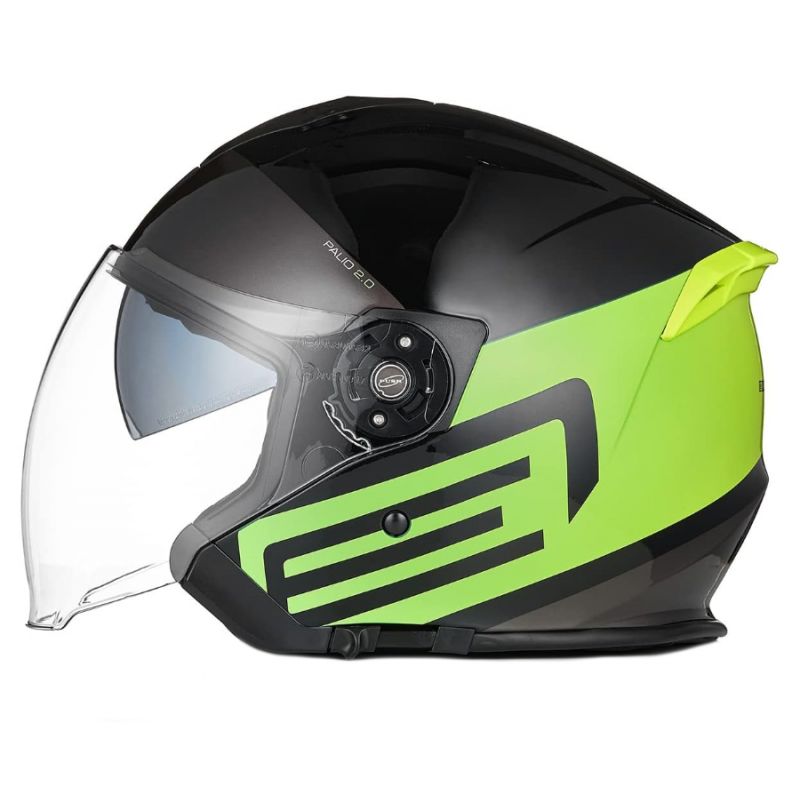 Linia Palio 2.0 charakteryzuje się wyjątkowo długą szybą, która zapewnia wysoki komfort podróżowania. Wizjer wykonany jest z materiału odpornego na zarysowania a jego powierzchnia odbija promienie UV. Aby jazda w słoneczny dzień nie stanowiła problemu kask został wyposażony w blendę przeciwsłoneczną wysuwaną jednym szybkim ruchem dłoni. Bez przeszkód można to zrobić bez ściągania motocyklowych rękawiczek. System wentylacji posiada regulowany przedni wlot powietrza, który w połączeniu z tylnym zapewnia komfort nawet w upalny dzień. Aby w pełni zapewnić stabilność na głowie kask został wyposażony w tylny spojler który stabilizuje go podczas jazdy z wyższą prędkością. Aby utrzymać kask w czystości posiada całkowicie wyjmowane i przystosowane do prania wnętrze. Wyposażony jest w zapięcie mikrometryczne. Kask posiada europejską homologację ECE 22-06 co gwarantuje wysoki poziom bezpieczeństwa.